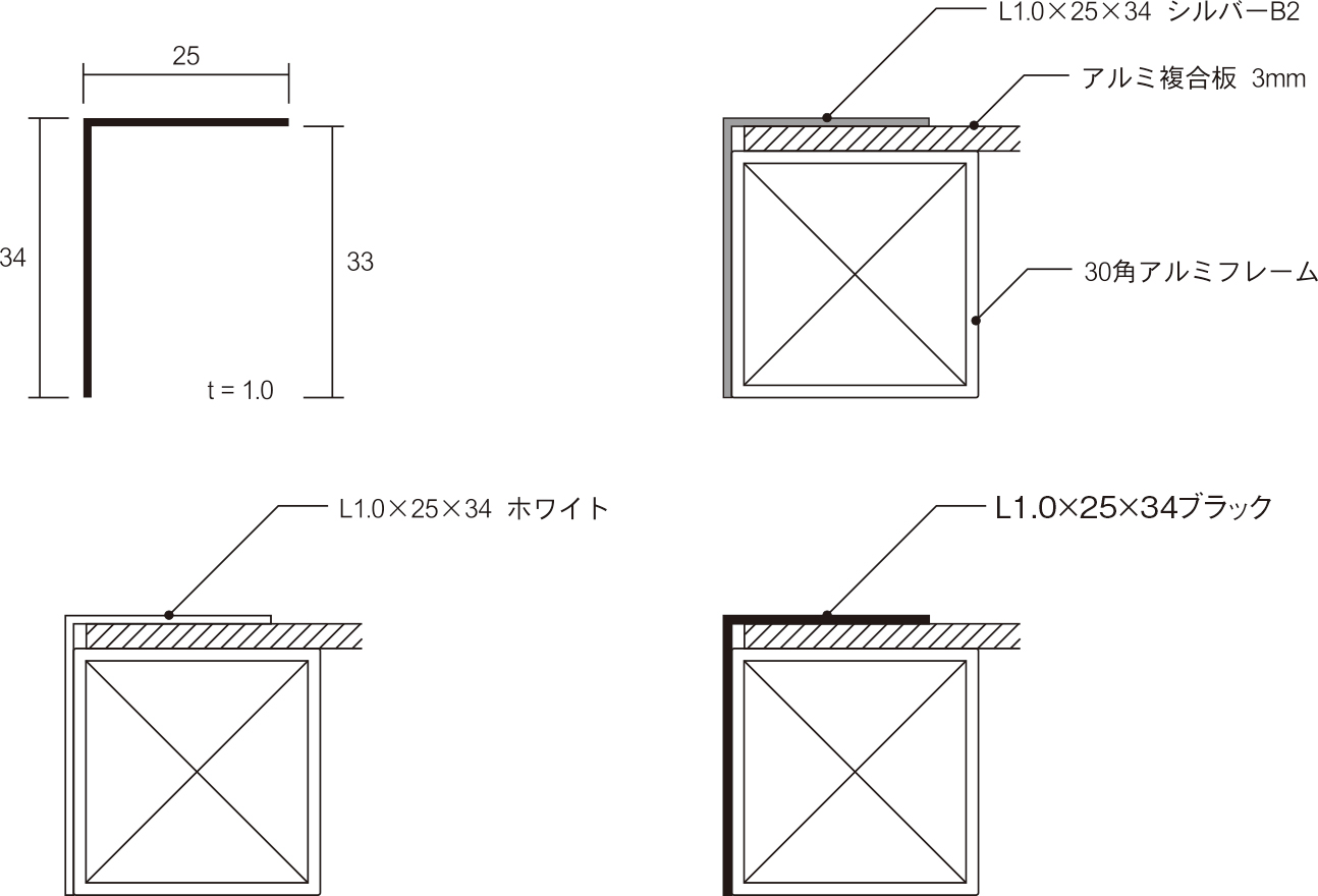 表面処理:B2アルマイト(シルバー)、ホワイト、ブラック/長さ L=4,000㎜